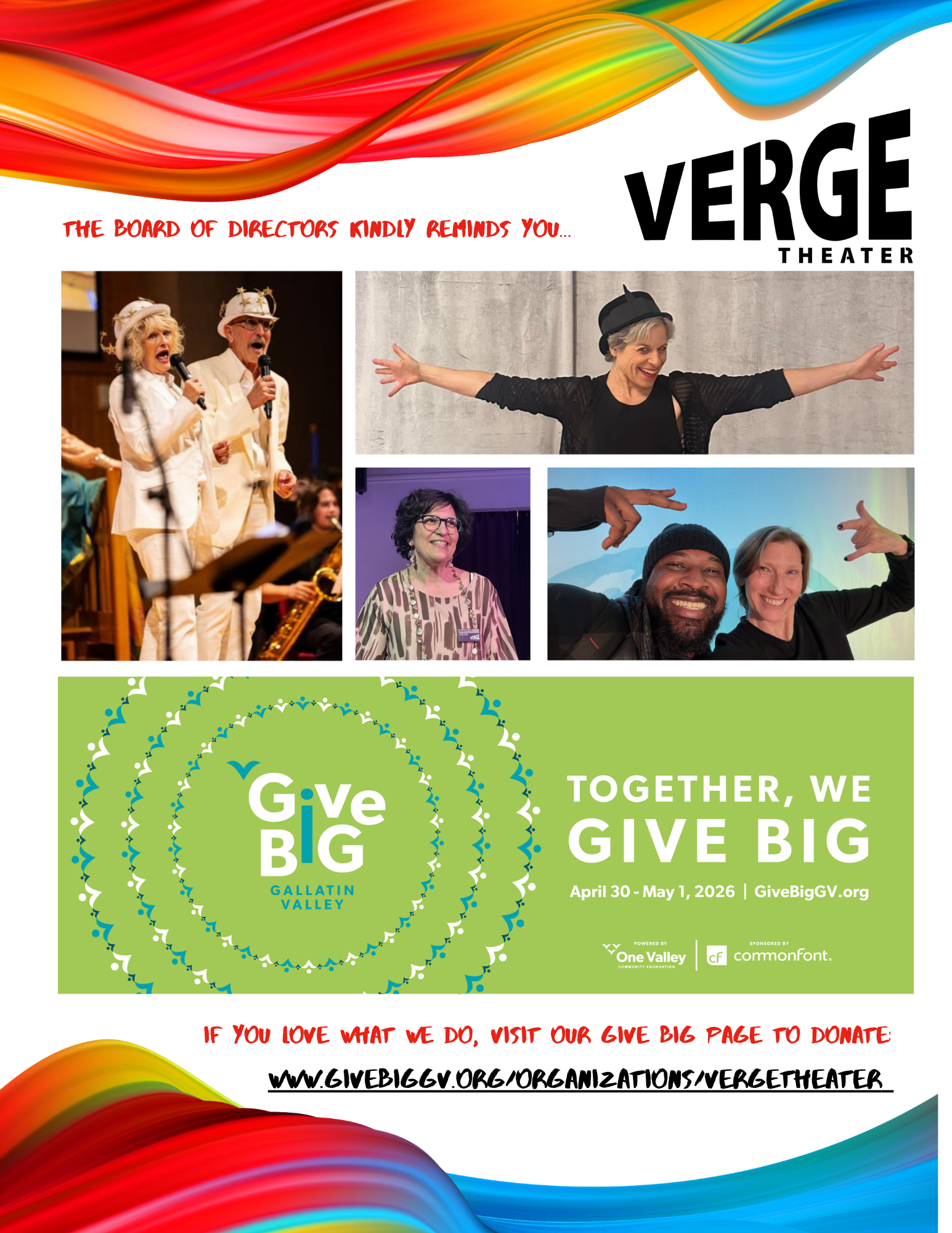 Verge Theater’s mission is to create and offer arts education and offbeat, thought-provoking theater that is empowering and accessible to all members of our vibrant local community.